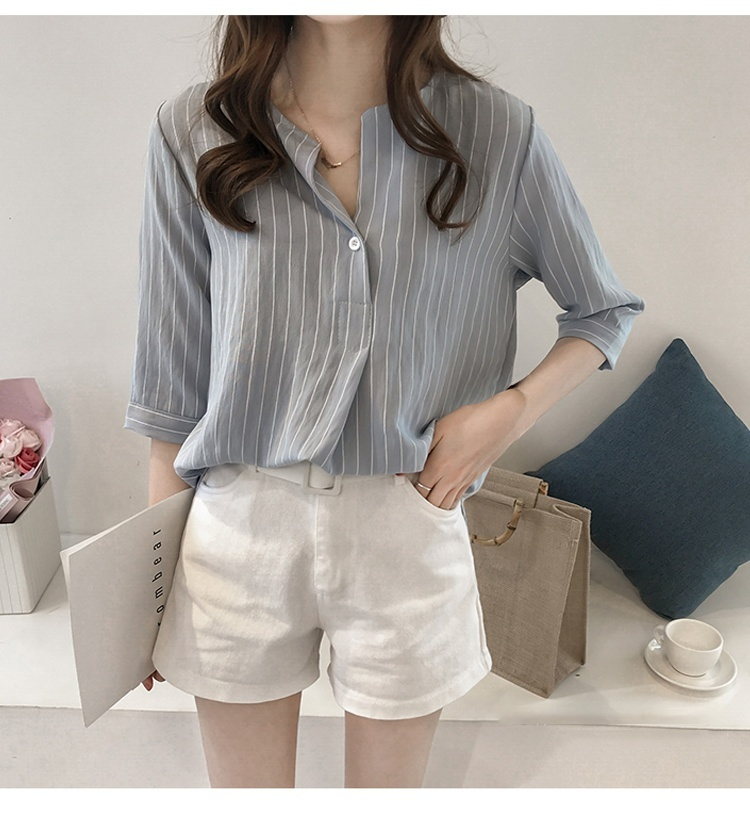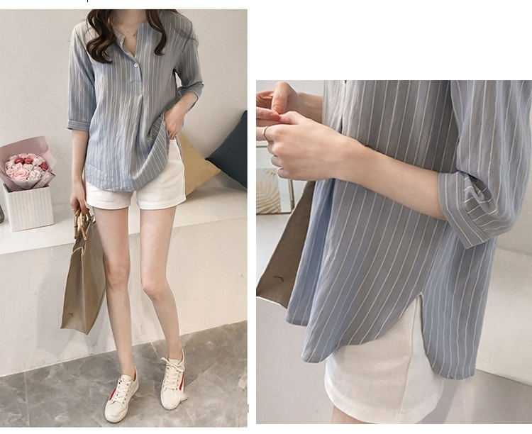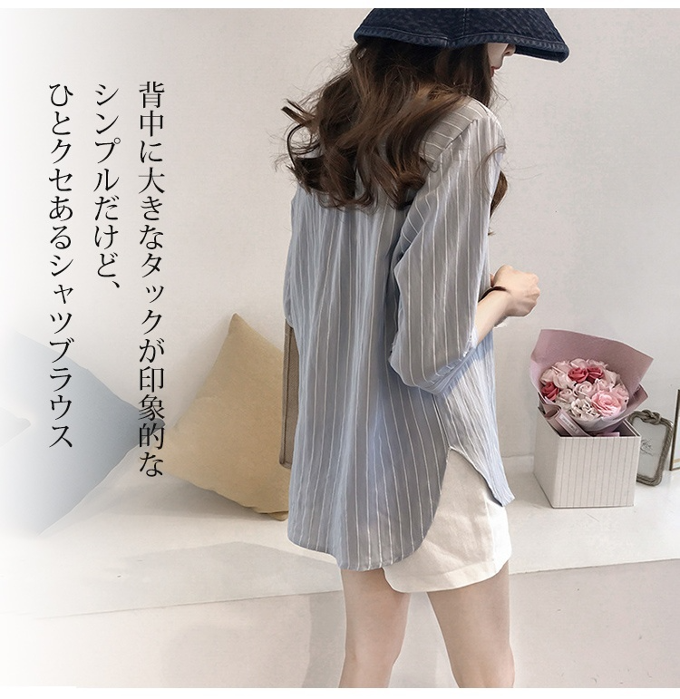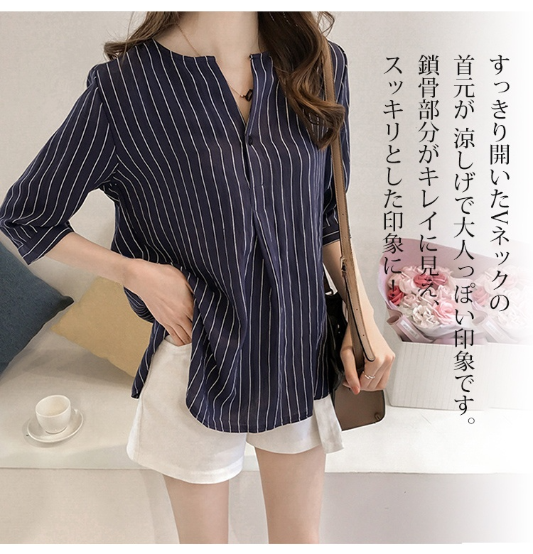 ストライプ柄 七分袖のシャツ トップス☆